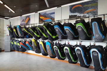 Bei uns findest du eines der grössten Gurtzeugsortimente zum Probesitzen! Und unser Schirmtestcenter verfügt über rund 30 aktuelle Demoschirme zum Testfliegen!